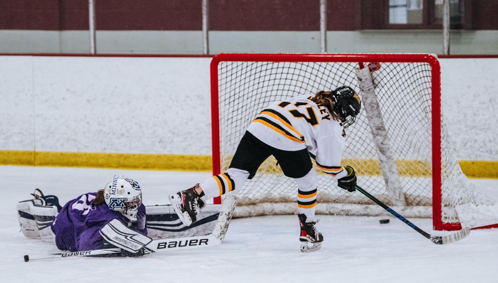 Jenevieve Henley scores for the Boston Jr. Bruins in Sunday's championship win over Team Minnesota Purple.