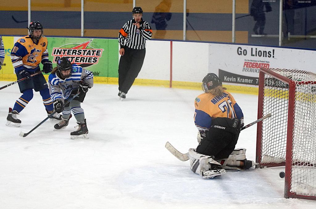 Both teams had numerous chances throughout the contest, with odd-man rushes and excellent defensive plays abounding for four periods. The shootout lasted about as long as it could, finally ending after Capri Meyer's goal. Makayla Moran scored in the shootout's second round to give the Moose the initial advantage.