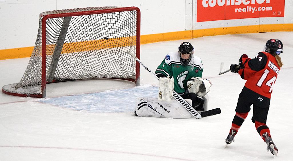 Capri Meyer scores the game-winning goal for the Moose on Saturday.