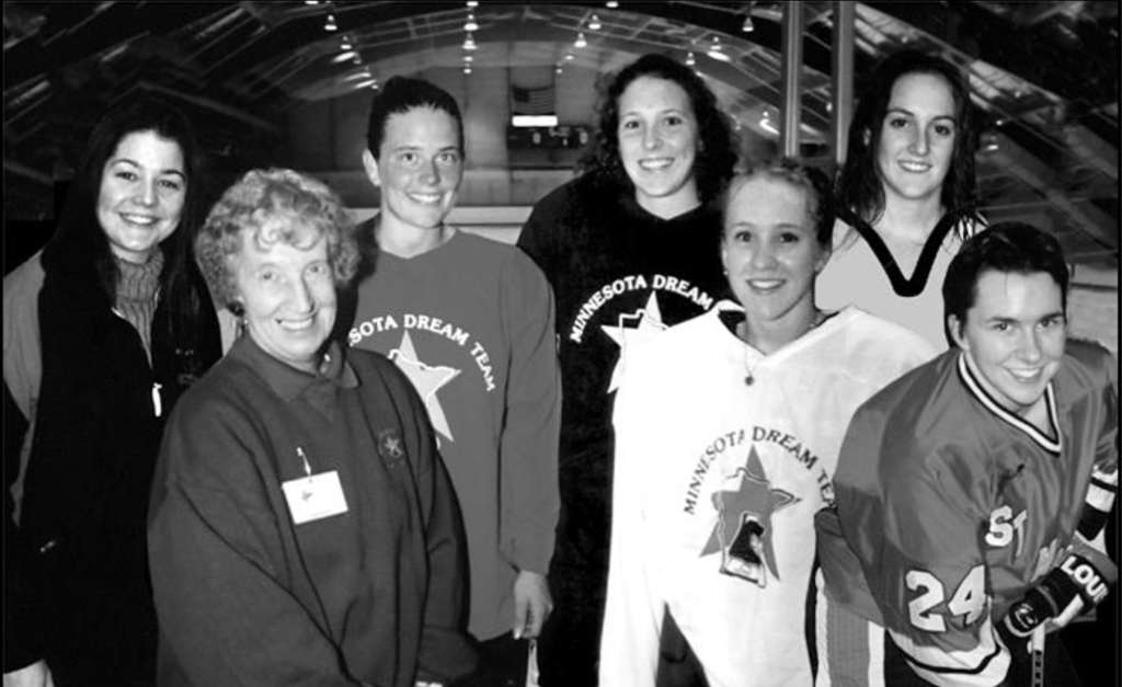 MN women's hockey pioneer Jane Ring with past winners.
