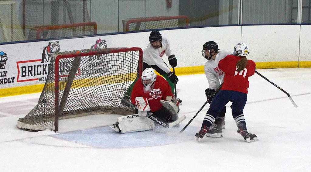 Myah Krueger scores the game-winning goal for 2024 White in Sunday's championship against 2024 Red.