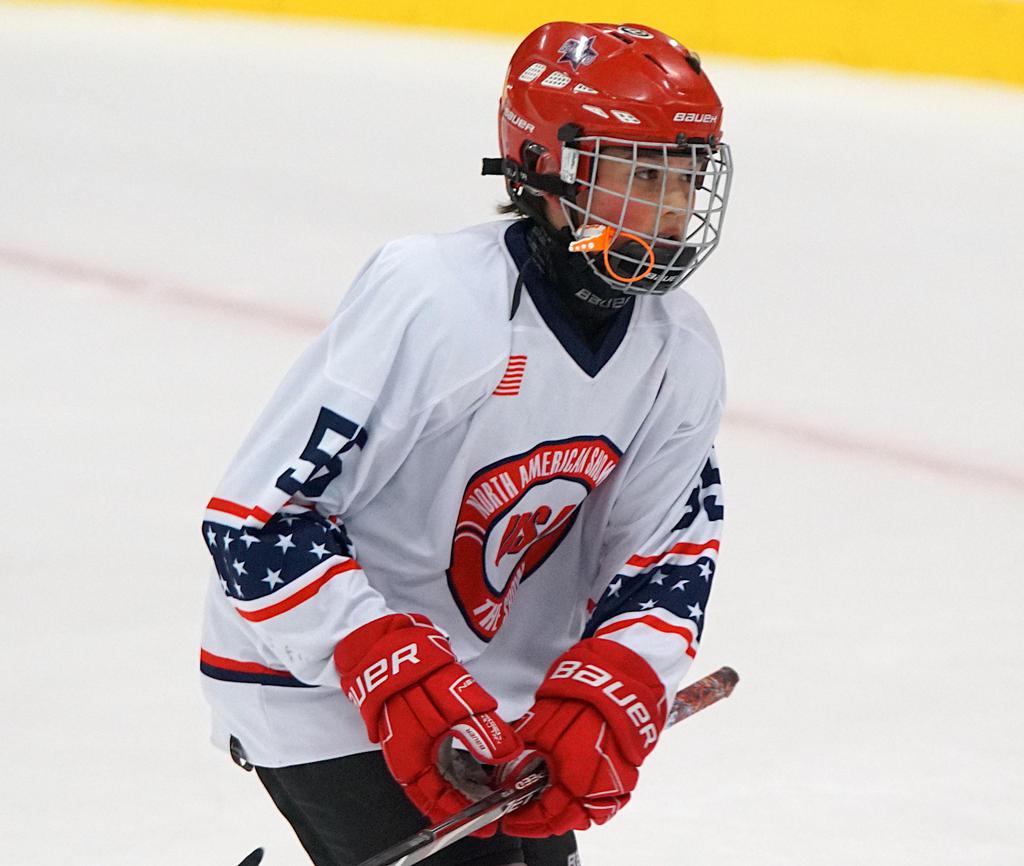 Team Southeast's Massimo Santa Maria (dark blue gloves) scores during Tuesday night's 10-4 win over Team USA.
