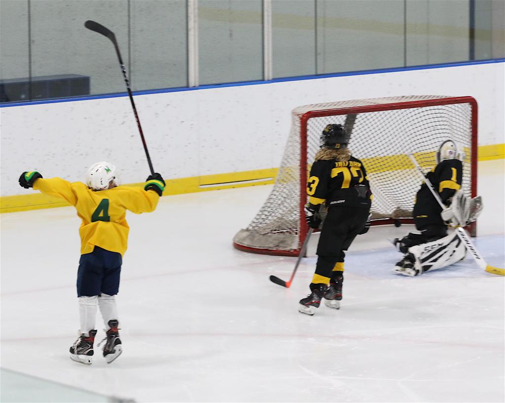 Beckett Ertel scores and celebrates Thursday for Team MN