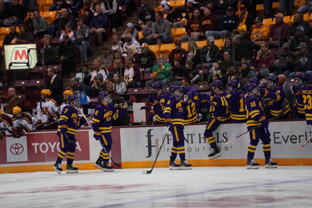 Based on the USCHO Men's Division I rankings heading into the weekend, the in-state showdown between the University of Minnesota Gophers and Minnesota State Mavericks was the biggest matchup in the country. A home-and-home series, the first game saw the No. 2-ranked Gophers host the No. 5 ranked Mavericks at 3M Arena at Mariucci on Friday, with the teams then making the trek to Mankato on Saturday for the second game of the series.