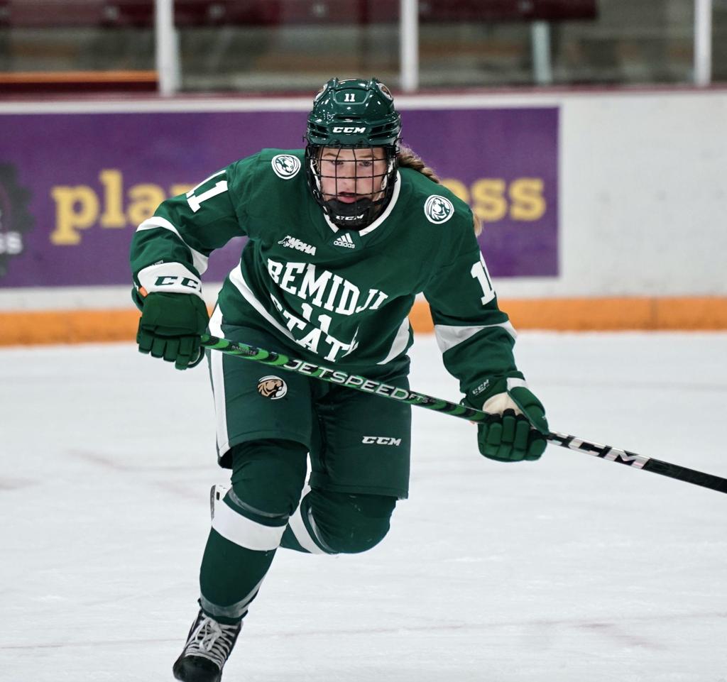 Warroad native Geno Hendrickson scored one of Bemidji State's two goals over the weekend.