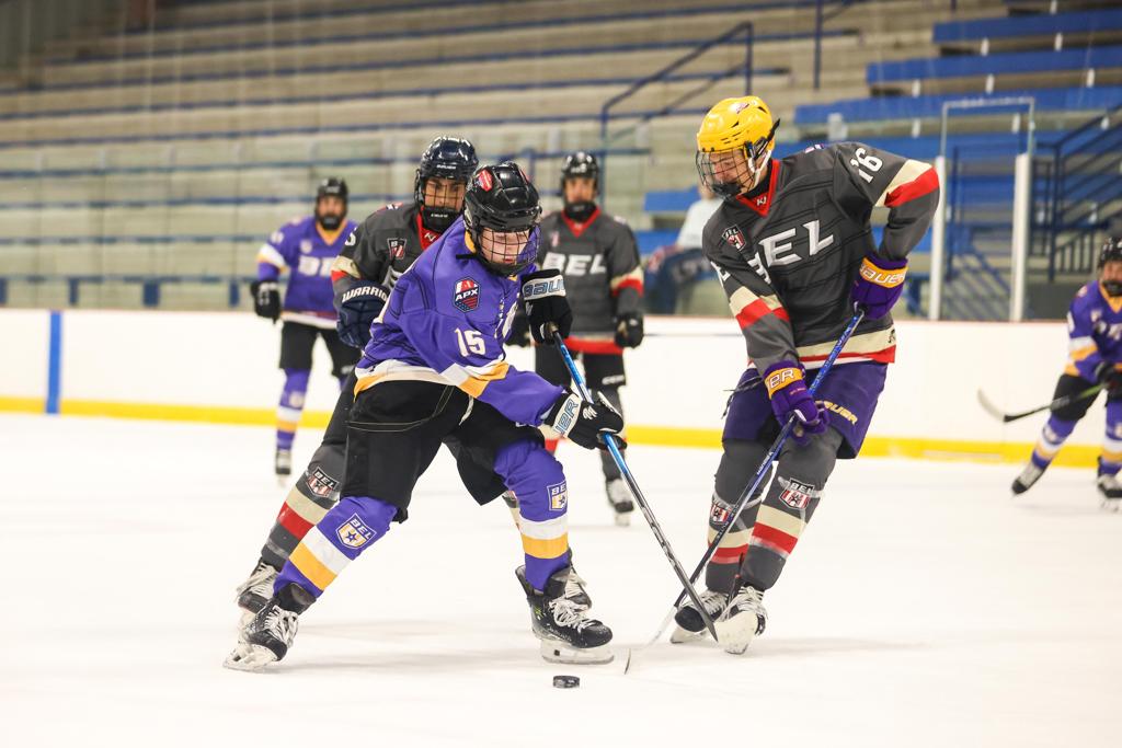 Ace Laack (15) drives the puck forward for the Kings in their win over the Golden Knights. Laack finished the game with a goal and three assists.
