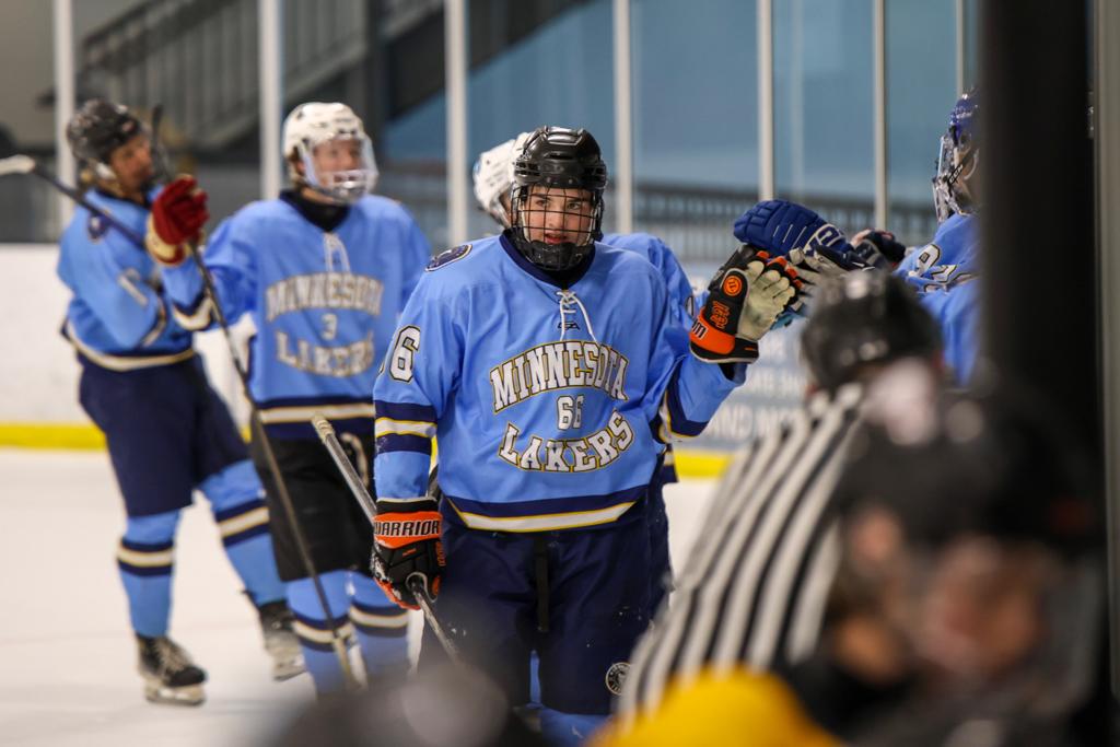 Leo Schmoll's hat trick carried the Lakers to a big win over ther North Stars in Andover.