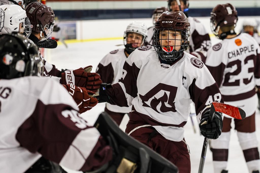 Stanton Cossalter had a hat trick for Minnetonka Peewee B on Friday morning.