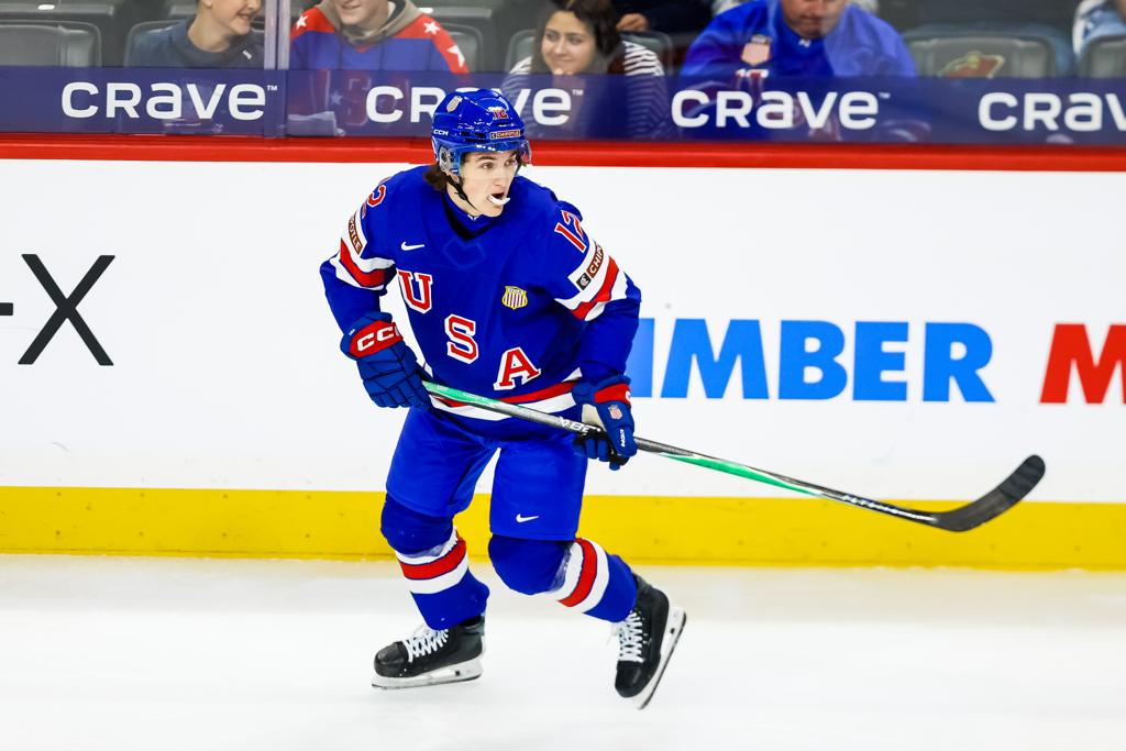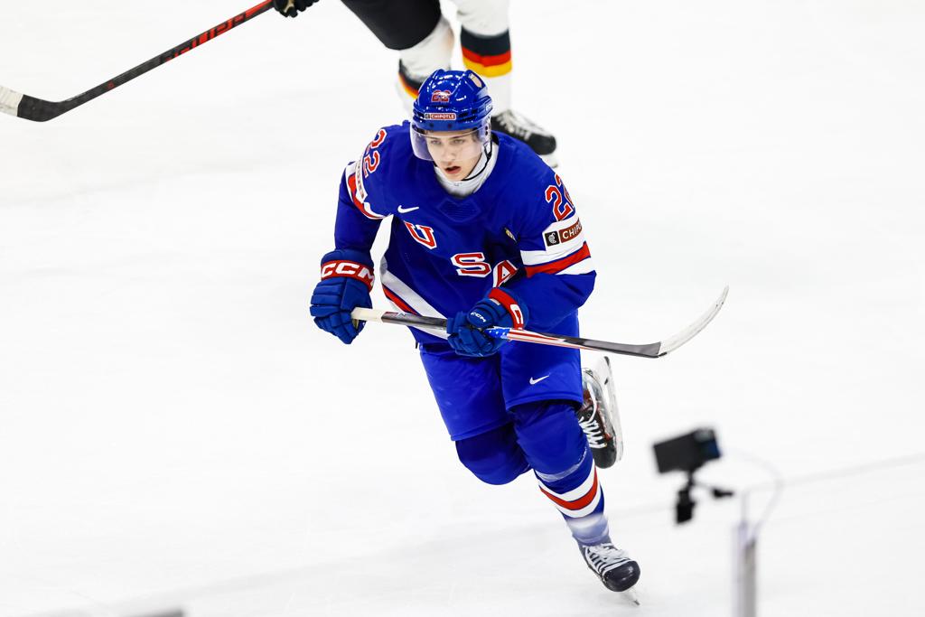 The Maple Grove native and current North Dakota forward netted two goals and added an assist in Team USA's 6-3 win over Germany at Grand Casino Arena, showcasing the offensive instincts and wicked shot that made him a third-round selection of the Colorado Avalanche in 2024 and the USHL's Player of the Year for the 2024-2025 season.