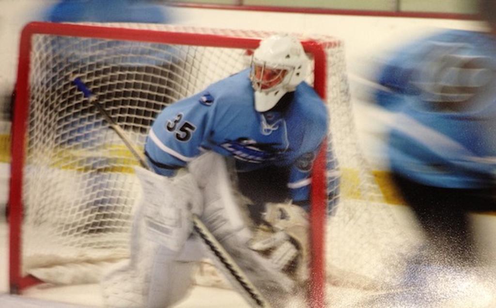 The Summer before his Senior year, Ryan Ess from Devenir Goaltenders stopped into General Sports where Adam worked. His boss Matt Haapala introduced the two goalies and they began to train together. “I had one year left of hockey, I set out to give it my all to make the Varsity that Winter.” Like any predictable happy ending story, there has to be sadness before the joy. Adam was the last goalie cut his Senior year. Within hours of being cut, Adam was back in his skates playing with his buddies. Buddies that also were cut from the Varsity tryout, some even that had played Varsity as Juniors for the Hornets. Thirteen total players for Adam’s Junior Gold A team had played Varsity or Junior Varsity hockey for Edina. Needless to say, that team did quite well winning the state Junior Gold A title. Winning the Junior Gold A state tournament with a margin victory of 18-2.