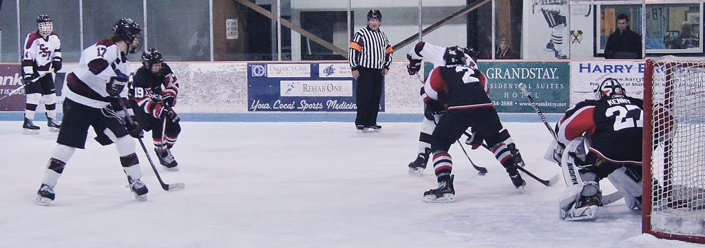 Thirty seconds later the Sabres scored to make it a 7-1 game. This time, the goal came off a 3-on-2 rush where the puck ended up loose by the left post. The Sabres’ Julian Detmer popped the puck in the net before the Badger goalie could recover.