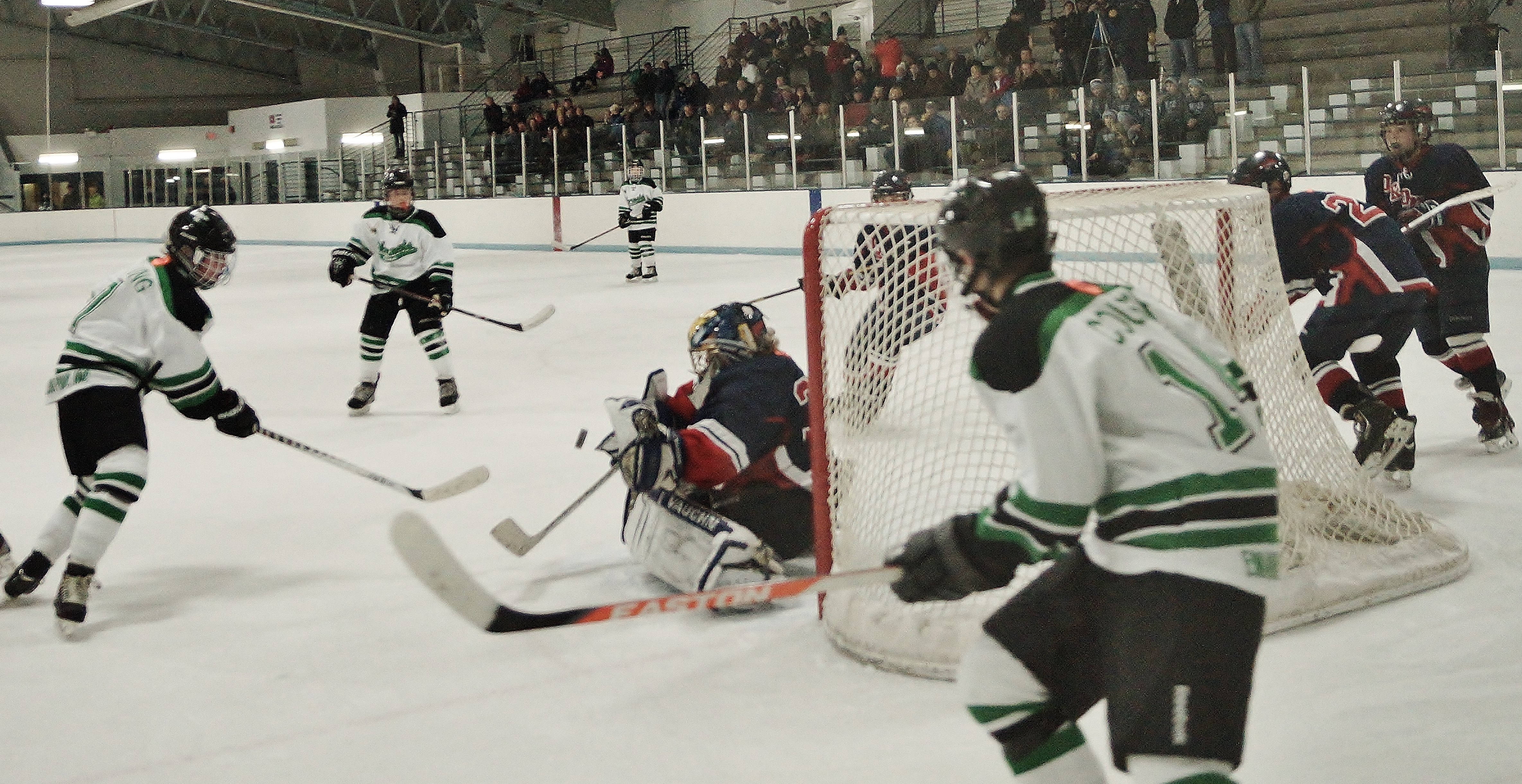 The puck is in the air on this Edina rush as the clock wound down in the third period in the Edina A Orono game