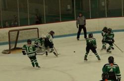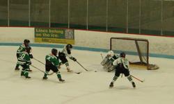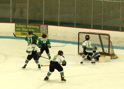 Late in the second, down 3-1 the Green team started to play with some spirit. With that spirit came mounting pressure on Cook. First year phenom, Nick Mikan got loose and fired a great shot to the far side of Cook. Cook made the pad save, but in doing so created a juicy rebound for the hard charging Drew Hatch, and Hatch put it home to narrow the White lead to 3-2 with just two seconds left in the period. White gave up the dreaded late period goal. At the Squirt level, late period goals can often lead to a huge turnaround for a trailing team.