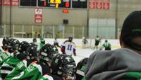 The Spring Lake Park bench erupts with sticks banging and coaches clapping as they watch their teammates celebrating scoring the winning goal.