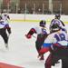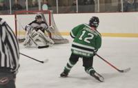 Edina A's Cole Cavanagh goes for a goal against Spring Lake Park's goalie Blake Holm. Holm made the save.