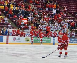 Both Totino-Grace and Luverne lost their openers in the Class A state tourney last Wednesday. Both won their consolation semifinals, Luverne beat Chisago Lakes Area 5-2 and Totino-Grace beat Orono 4-1. Both teams met in the consolation championship at the maroon and gold drenched Mariucci Arena for a 10:00 game start.