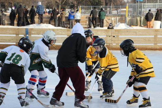A faceoff at one of Edgecumb's youth hockey games. Courtesy of Edgecomb Association