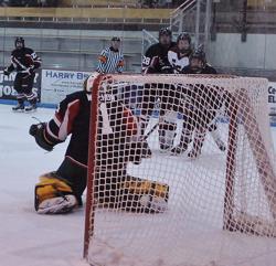 Still the Badgers did not give up. With 52 seconds left on the clock, TW's Matt Berkovitz/Ashwaubenon drove a rebounding puck past Brodeur from the lower left faceoff circle to end the scoring 5-1.
