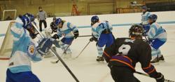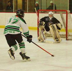 Edina A's Brett Chorske goes for a goal against Chaska/Chanhassen in the District 6 playoff elimination game won by Edina A.
