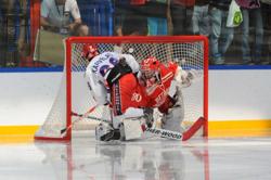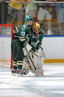 St. Paul's Luke Hause consoles Team MN Goalie Jacob Fowler after one of the Bulldog goals.