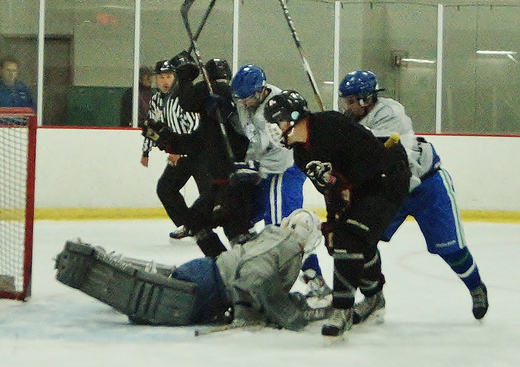Score sheets were kept, but no rosters were written down making identifying the players difficult. Tartan’s goalie, wearing #33, had an outstanding tourney playing strong in the nets. In one hour, he stopped New Prague in the third period of a Tartan II game (19 of 20 shots, YHH count) and moved next door to stop Farmington’s first 17 shots in a Tartan I game before giving up a score.