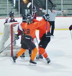 The third period, the Sweet played defensive hockey. They clogged the center zone and sent the puck deep time after time and held onto the single goal lead. Late in the third period, the Sweet drew a penalty. The faceoff was held outside the Orange zone. The Sweet center gained control of the puck on the faceoff and drove the net beating the Orange defense to score the insurance goal shorthanded for the insurance goal. The Orange never recovered and the game ended with a 4-2 Sweet victory.