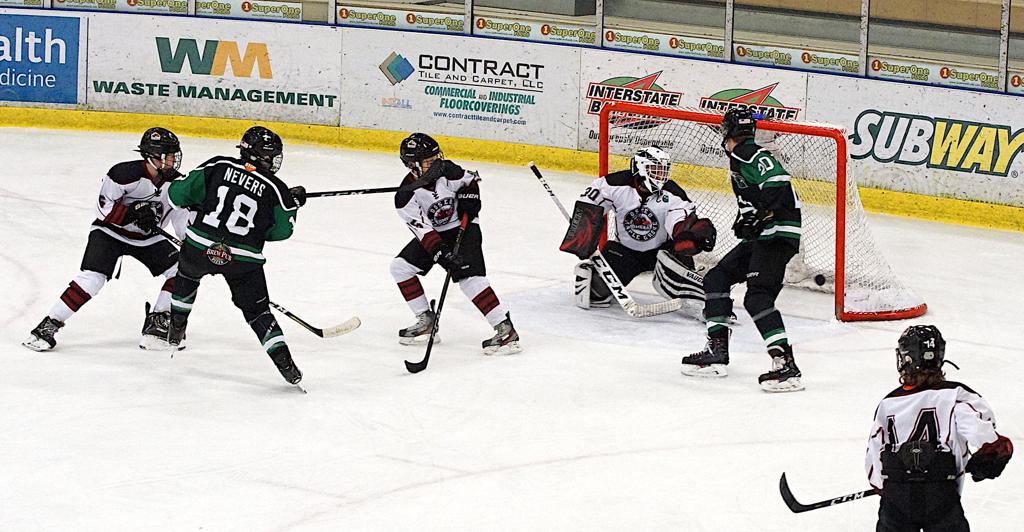 Jackson Nevers (18) scores for Edina PWAA in Sunday's win over Osseo-Maple Grove.
