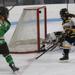 C.C. Bowlby netted a hat-trick, while goaltender Elli Strittmater made 36 saves as the Hornets earned their first win of the season.