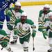 The Huskies scored three times in the third period en route to a 4-3 win over the top-ranked Hornets.