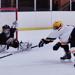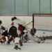 Sibley's Lucas Williams (buried behing OMG's Nick Latvala) beats OMG's goalie outstretched glove to start a Warrior 5 goal scoring spree