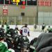 Apple Valley's goalie Ethan Kapps stops this Lakeville South rush at the Burnsville Tourney